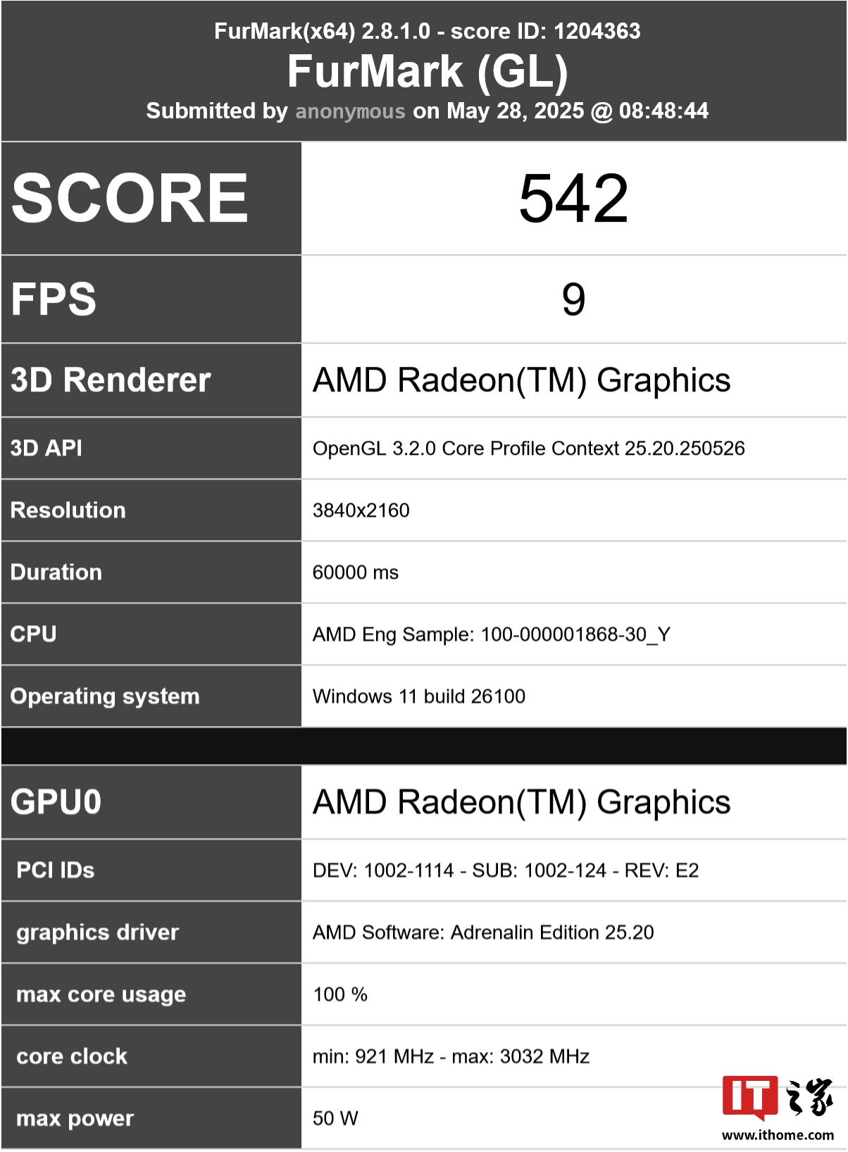 AMD "450" 处理器核显 FurMark 跑分曝光,与 Radeon 780M 大致相当